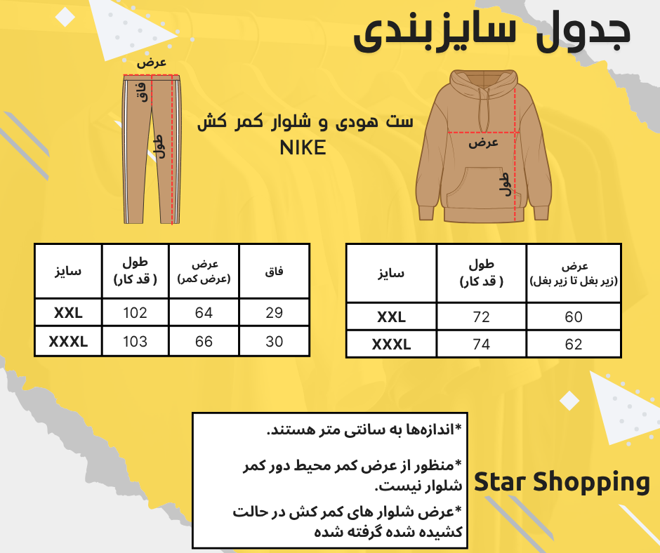 به جدول سایز بندی (آخرین عکس)توجه کنید.