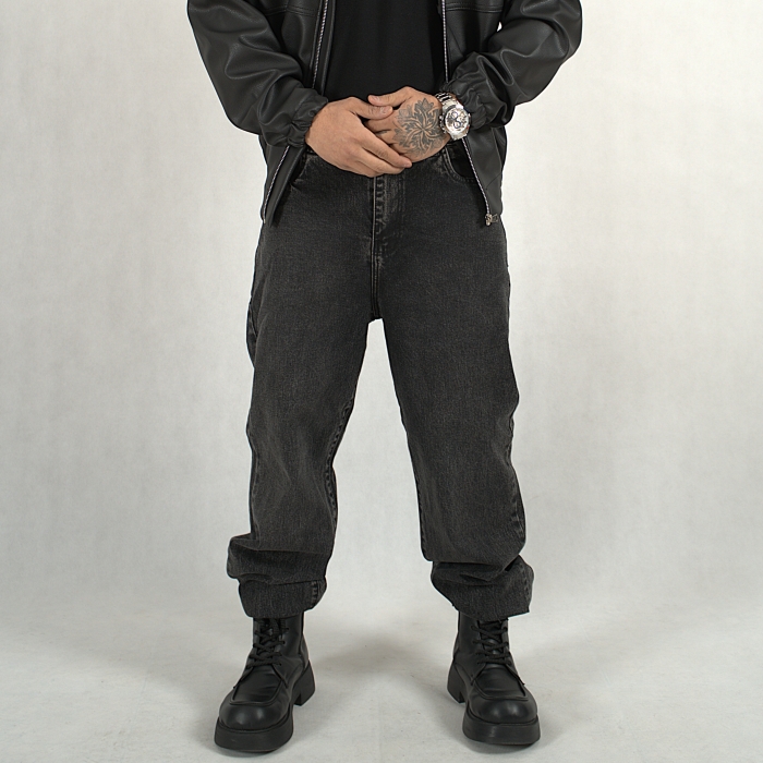 شلوار جین نیم بگ ذغالی 598
