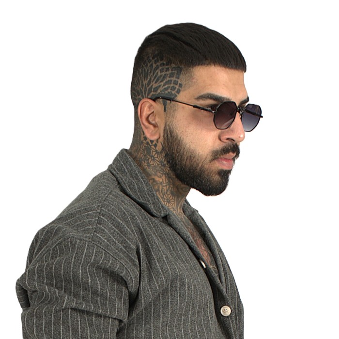 جنس و رنگ لنز: لنزها آفتابی هستند با رنگ دودی (طیف خاکستری تیره). رنگ لنز از بالا به پایین سایهروشن (Gradient) شده است؛ یعنی در بالا تیرهتر و در پایین روشنتر است.